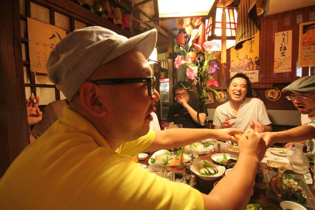 「マサカズ、顔でイケ!」とm.o.k氏。『イヤイヤ、みんなで仲良く食べま…』